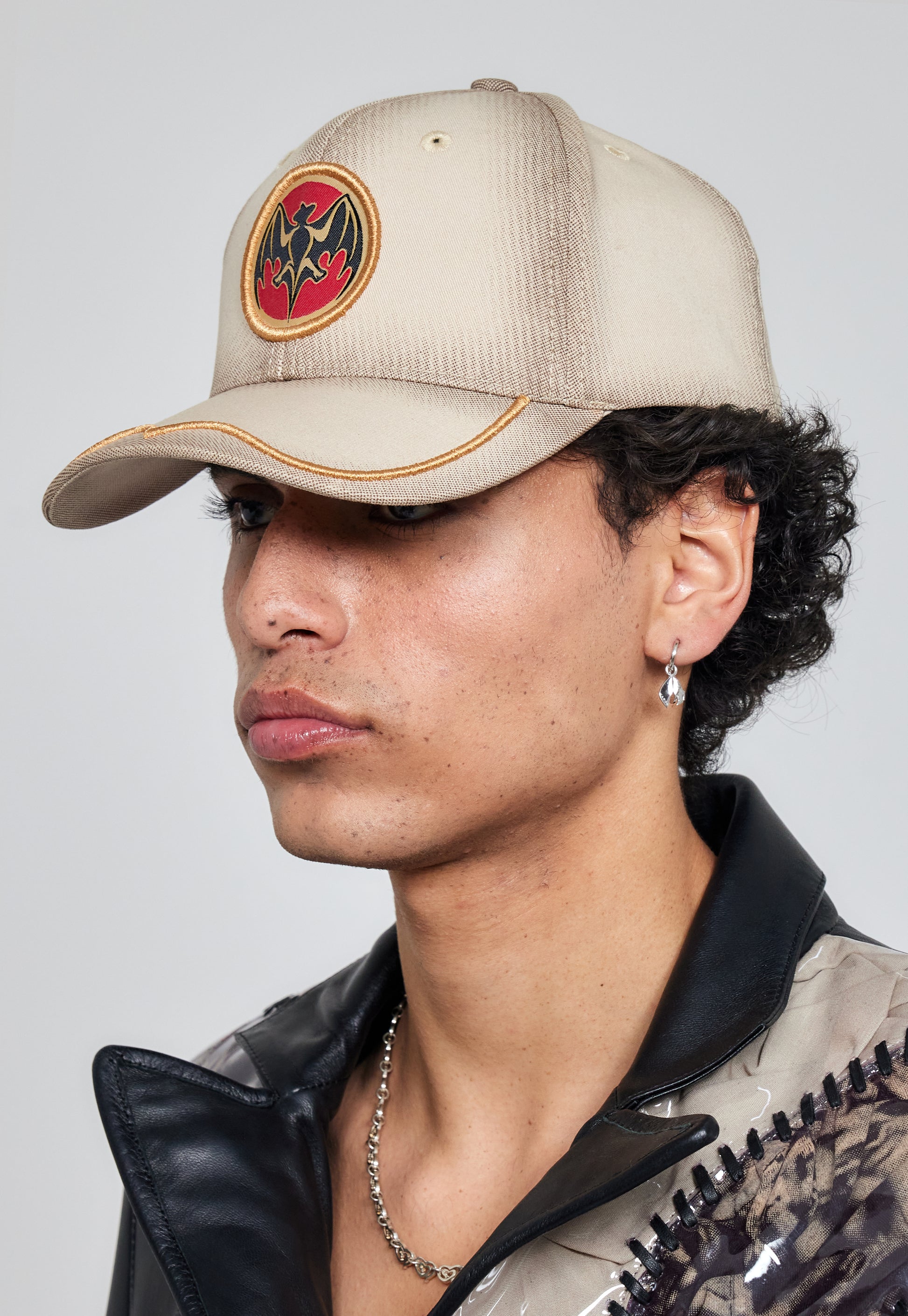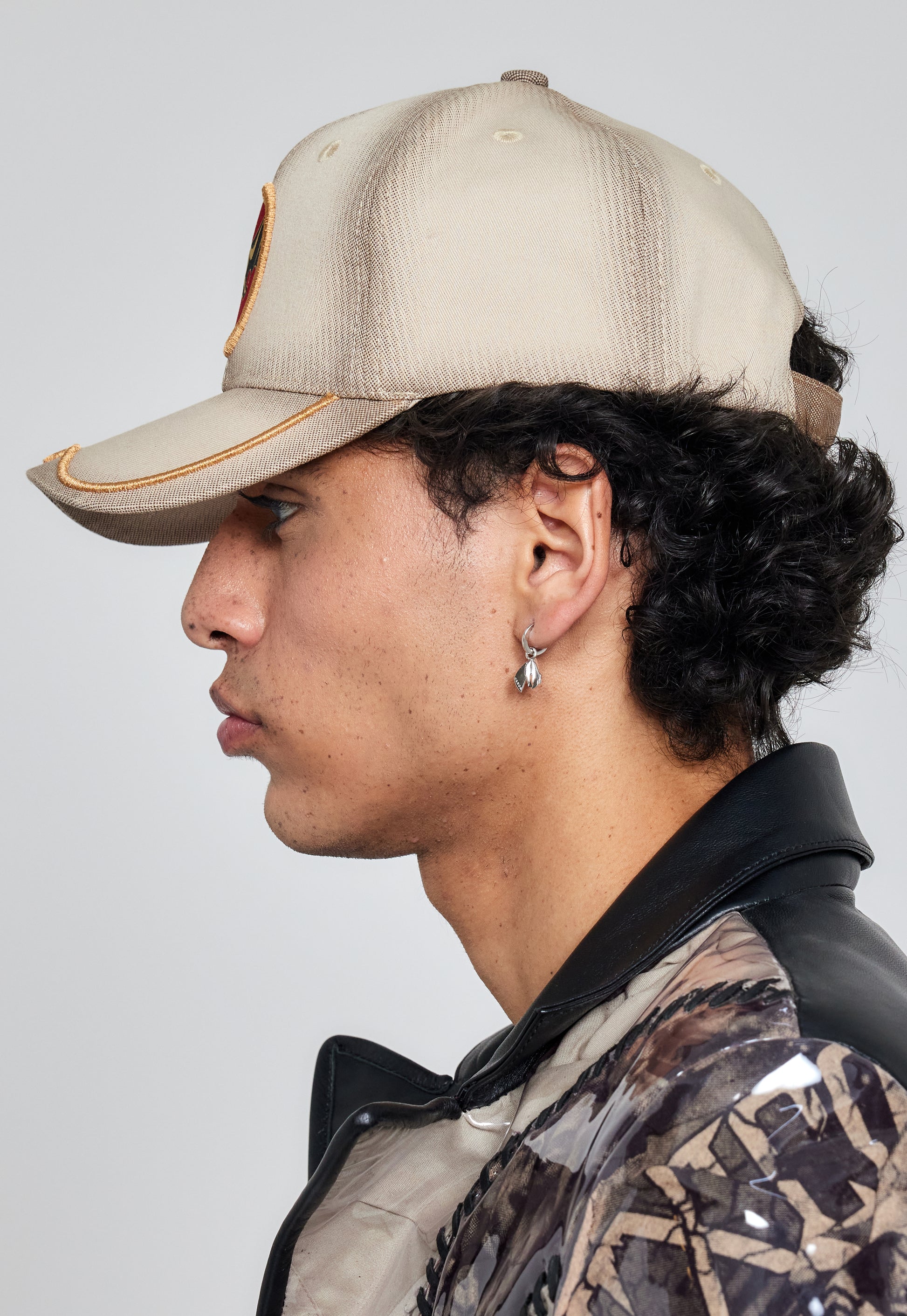 Beige 100% cotton twill cap featuring a front micro-embroidered patch, brown shaded cut details with screen printing, and a 3D embroidered visor. Inside, a special numbered patch (e.g. 20/150).